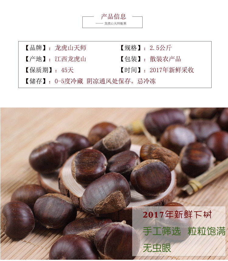 天师板栗的特点是:粒大、色白、肉嫩、香甜。可生食,也可熟食。