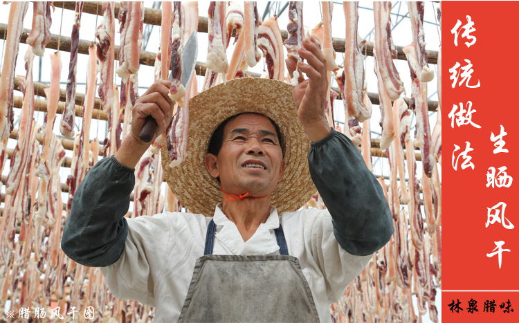 厂名: 连州市东陂林泉食品有限公司腊味食品厂 配料表: 猪肉 糖 盐 肠衣 白酒等。