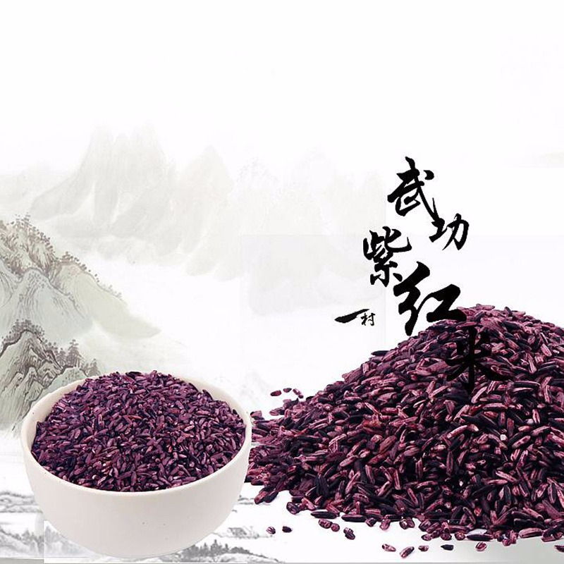 紫红米米粒呈紫红色、透明状,富含一般水稻中缺乏的维生素C、黄酮类化合物、花青素、生物碱、强心苷、天然色素、木酚素和钙、铁、磷、硒等微量元素,具有滋阴补肾、健脾胃、明目活血、接骨生肌、防血管破裂、止血、乌发之功效,所含黄酮类生化合物能降低血压,抑制癌细胞和抗癌作用,是一种罕见的保健绿色食品,更是馈赠亲友之佳品。