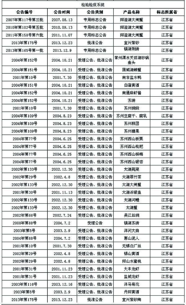 目前江苏共有阳澄湖大闸蟹、洞庭碧螺春茶、盱眙龙虾、狼山鸡、阳山水蜜桃等在内的400个产品被批准为国家地理标志保护。